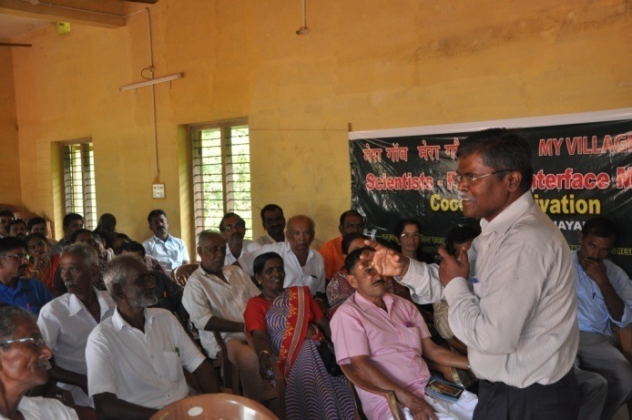 ICAR- CPCRI, Kasaragod implemented the MGMG initiative in collaboration with other stakeholders’ viz., Krishi Vigyan Kendra, Department of Agriculture, Input dealers, progressive farmers etc. Thirty six scientists were grouped into eight teams and selected 38 villages in Kasaragod district of Kerala as given below. During October - December 2016, meetings, interface programmes, trainings, demonstration on improved practices, farm advisory visits, mobile advisory services were organized in the selected villages for the benefit of farming community.