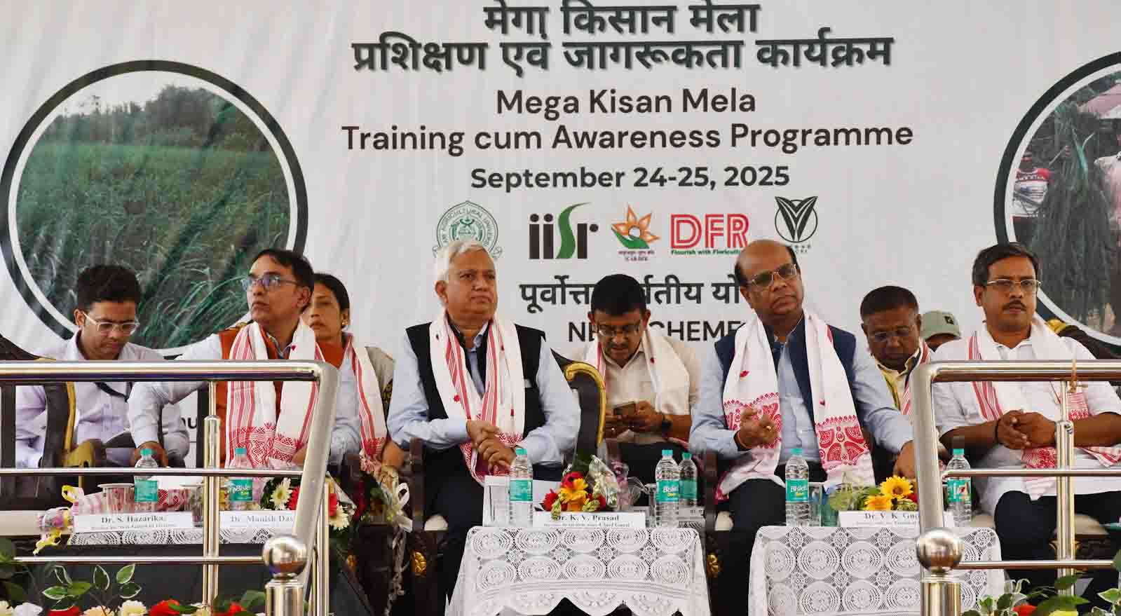 A mega Kisan Mela was organized at ICAR- CPCRI, RC Kahikuchi on the 24th and 25th of September, 2025 in collaboration with ICAR DMAPR, Anand Gujarat, ICAR DFR, Pune, Maharastra, ICAR IISR, Kozikode, Kerala, and AAU, Jorhat Assam. The chief guest of the programme was Dr. K.V Prasad, Director, DFR Pune, Maharastra. Other dignitaries present were Dr. Manish Das, Director, DMAPR, Anand Gujarat, Dr. S. Hazarika, Director, ICAR Research Complex for NEH Region, Umiam, Meghalaya, Mr Loken Das, CGM NABARD, Guwahati, Dr. V.K Gupta, Director NRC on Pig, Guwahati, Dr. H.P Maheswarappa Principal Scientist, ICAR CPCRI Kasaragod, Dr Alpana Das Principal Scientist & Scientist in charge, ICAR CPCRI RC Kahikuchi, Mr K K Bora, Organizing Secretary BKS and Dr. Pradip Mahanta, Chief Scientist HRS Kahikuchi