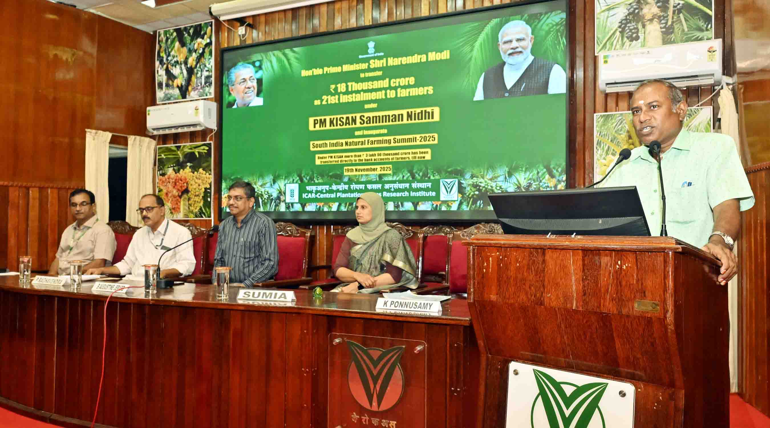 ICAR-CPCRI, Kasaragod conducted a training on ‘Natural Farming’ on 19 November 2026, joining hands with the South India Natural Farming Summit – 2025 inaugurated by the Hon’ble PM at Coimbatore. Around 557 farmers comprising 340 male and 210 female and 7 other stakeholders. The staff of ICAR-CPCRI also attended the inaugural session presided over by Dr. B. Augustine Jerard, Director-In-Charge and Project Coordinator (Plantation Crops).