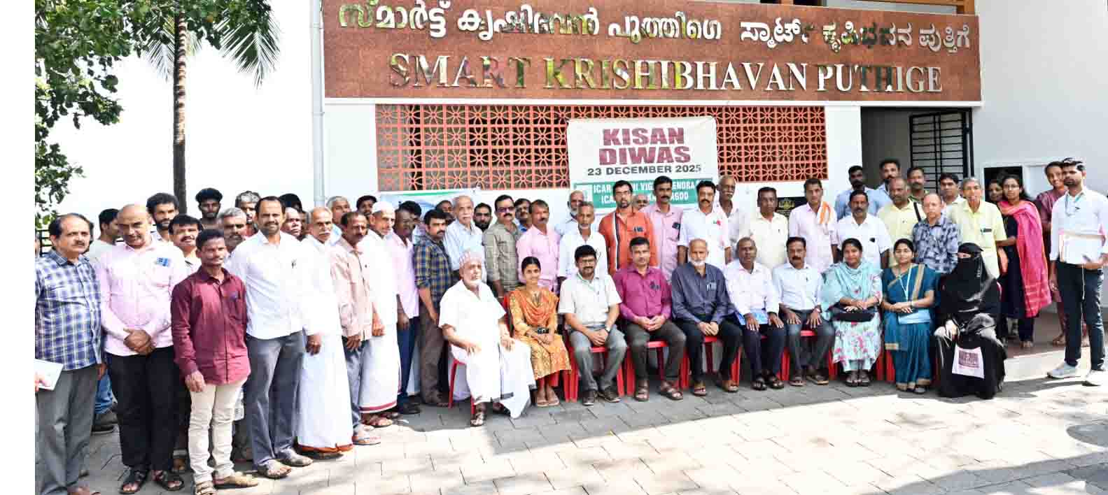 ICAR-Central Plantation Crops Research Institute has organised National Farmers Day at its headquarters as well as Regional Stations and Centers on 23.12. 2025. Dr. K. Balachandra Hebbar, Director, ICAR-CPCRI has inaugurated the event in Puthige Gram Panchayat (Smart Krishi Bhavan), Manjeswar block of Kasaragod district in the presence of Sri Ananda, Project Director, ATMA, Kasaragod, Smt. Ancy U A, ADA, Manjeswar, and Sri Dinesh, Agricultural officer, Puthige and Dr. Benjamin Mathew, SMS (Horticulture), KVK, Kasaragod. Dr. K. Ponnusamy, Head Social Science explained the idea behind the launching of Viksit Bharat - G-RAM-G scheme and its mode of operation. Dr. Hebbar emphasized the importance of agricultural sustainability and climate resilience while spearheading the nation's progress towards Viksit Bharat 2047. He stated that soil and water are two critical ingredients of agriculture which need to be protected against the onslaught of natural calamities and ensuring food security. It is clarified that every adult in rural families will get a guarantee of 125 days of employment of unskilled work and unemployment allowance will be credited in bank account if the states fail to provide the employment within 15 days.