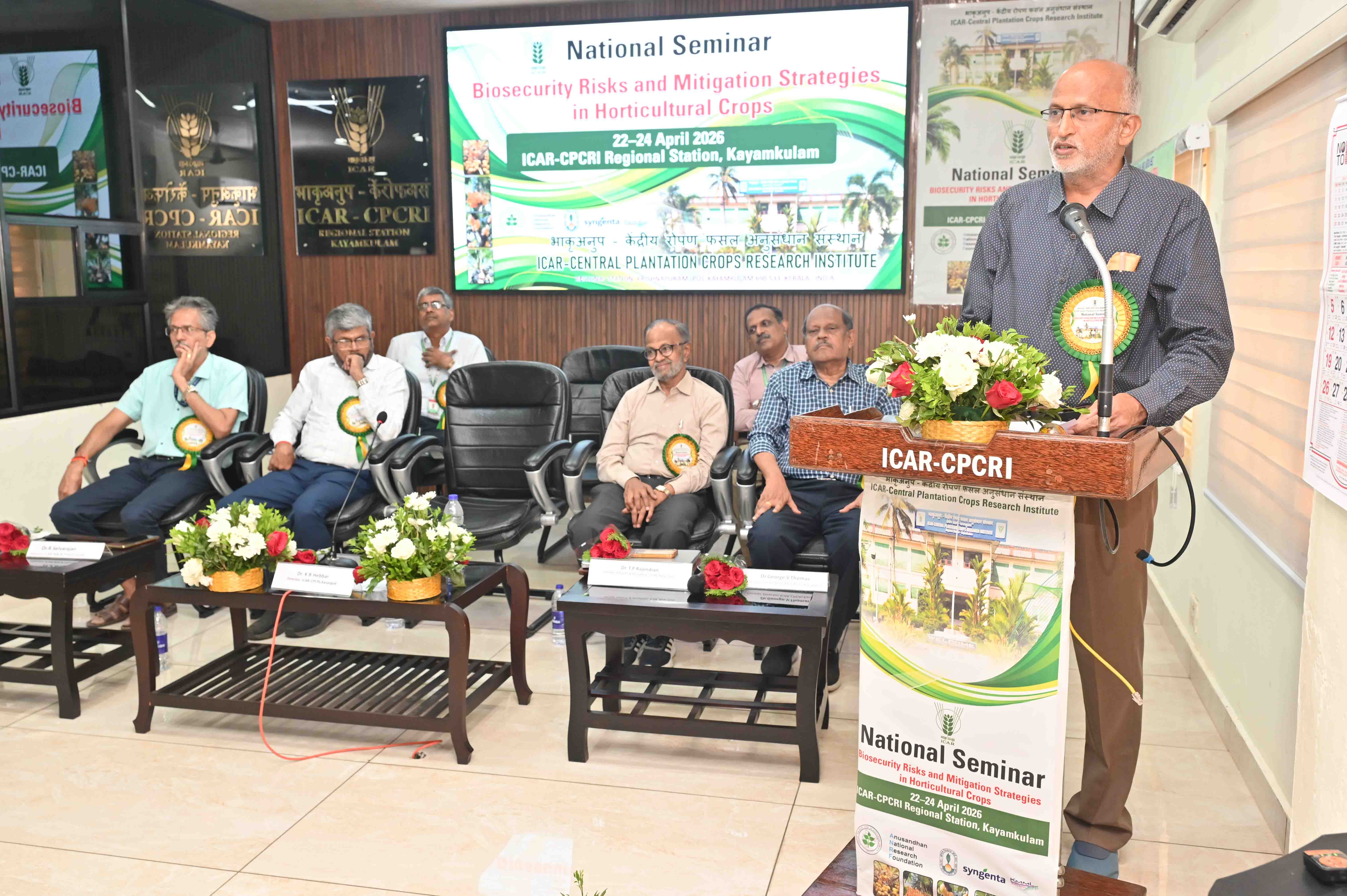 A three-day National Seminar on “Biosecurity Risks and Mitigation Strategies in Horticultural Crops” was held at the ICAR-CPCRI Regional Station from 22–24 April 2026. The seminar aimed to address biosecurity risks in horticultural crops and promote innovative technological solutions aligned with the One Health approach.