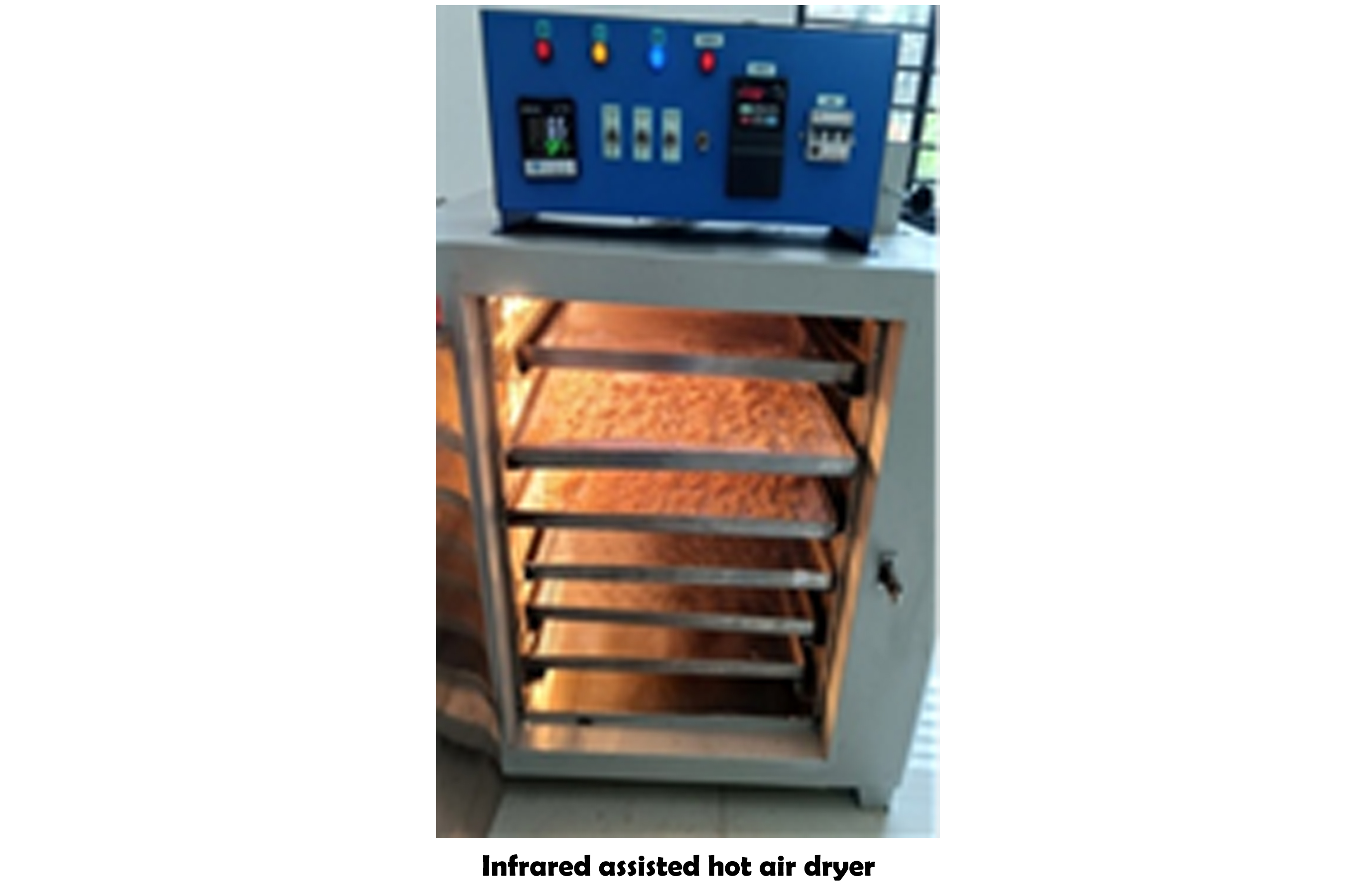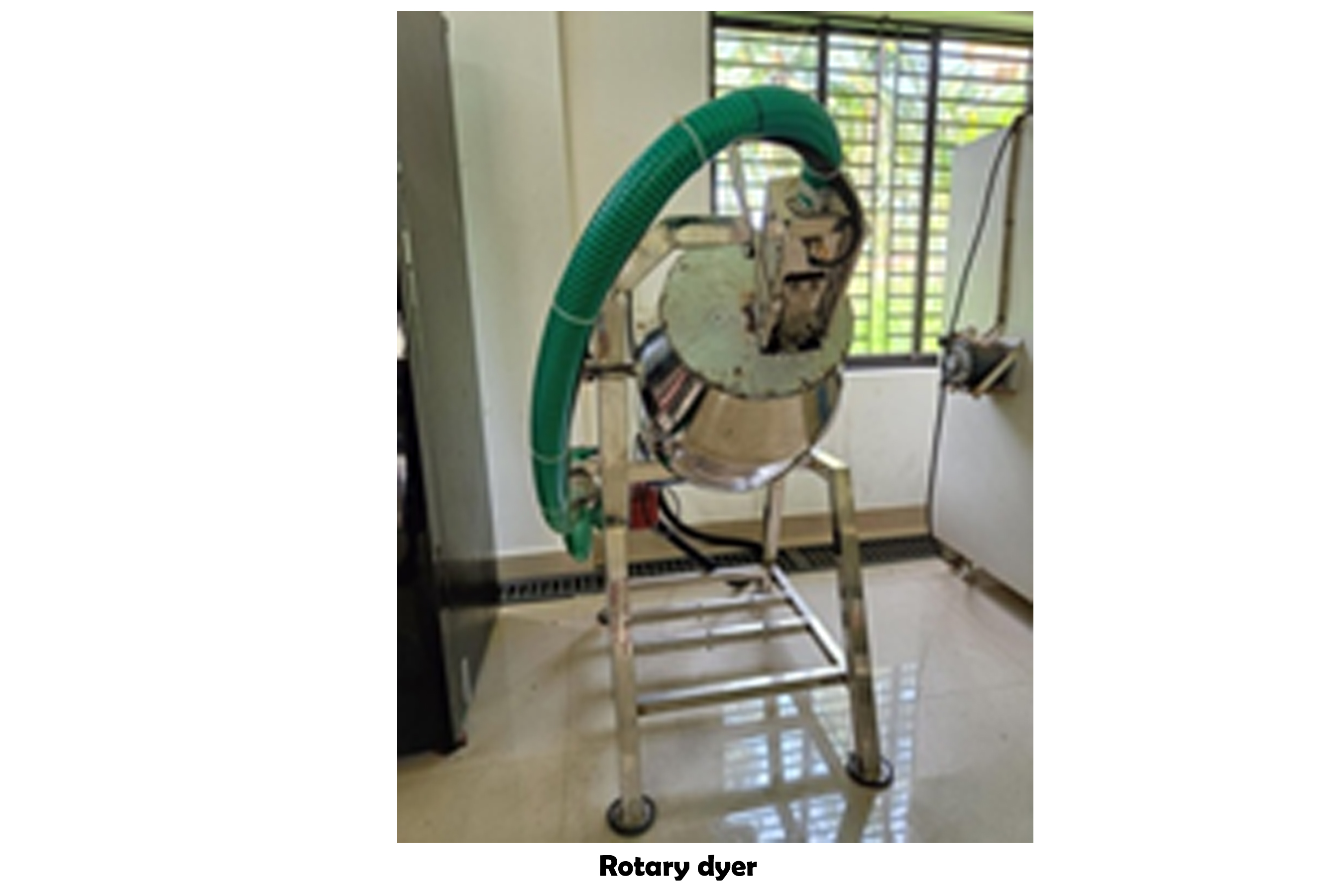 The rotary drum with a flavour-coating function is an advanced machine developed for simultaneous dehydration and flavour application in coconut chips. With a handling capacity of 5–7 kg of coconut slices, it is particularly suited for producing salted and spicy coconut chips. Experimental trials showed that dehydrating 0.5 kg of coconut slices required approximately 25–30 minutes. The system comprises a stainless steel rotary drum (capacity: 7 kg) driven by a 0.5 hp motor operating at 30 rpm, and a 1 kW heating coil that supplies hot air at a velocity of 0.1 m/s. Using this setup, the production of 5 kg of coconut chips can be done in around 2 hours. In comparison, the conventional method requires a 4 kW heating coil running for nearly 6 hours to process 10 kg of chips. Thus, the rotary drum unit achieves about a 50% reduction in both drying time and energy consumption, while also enabling uniform flavour coating of the product.